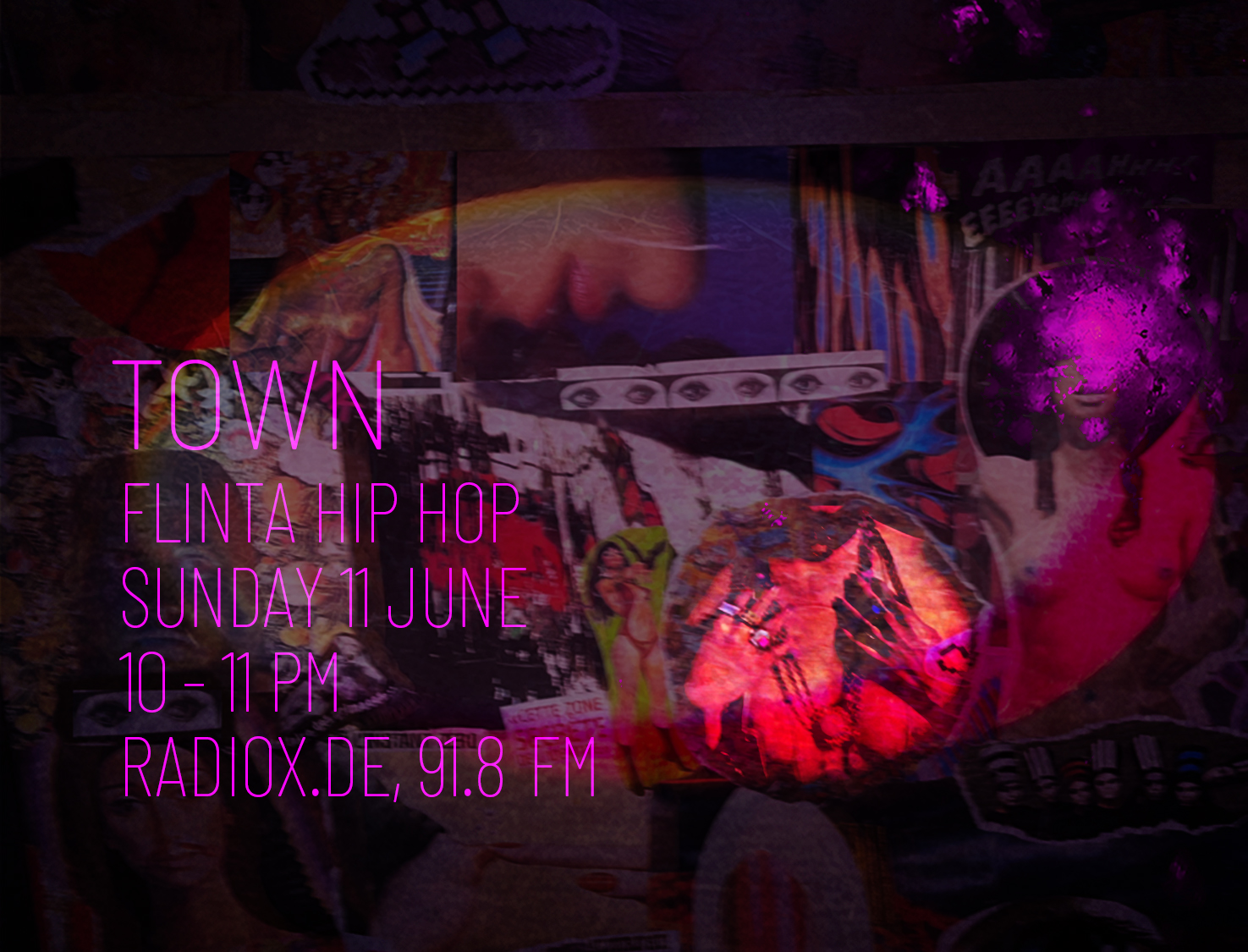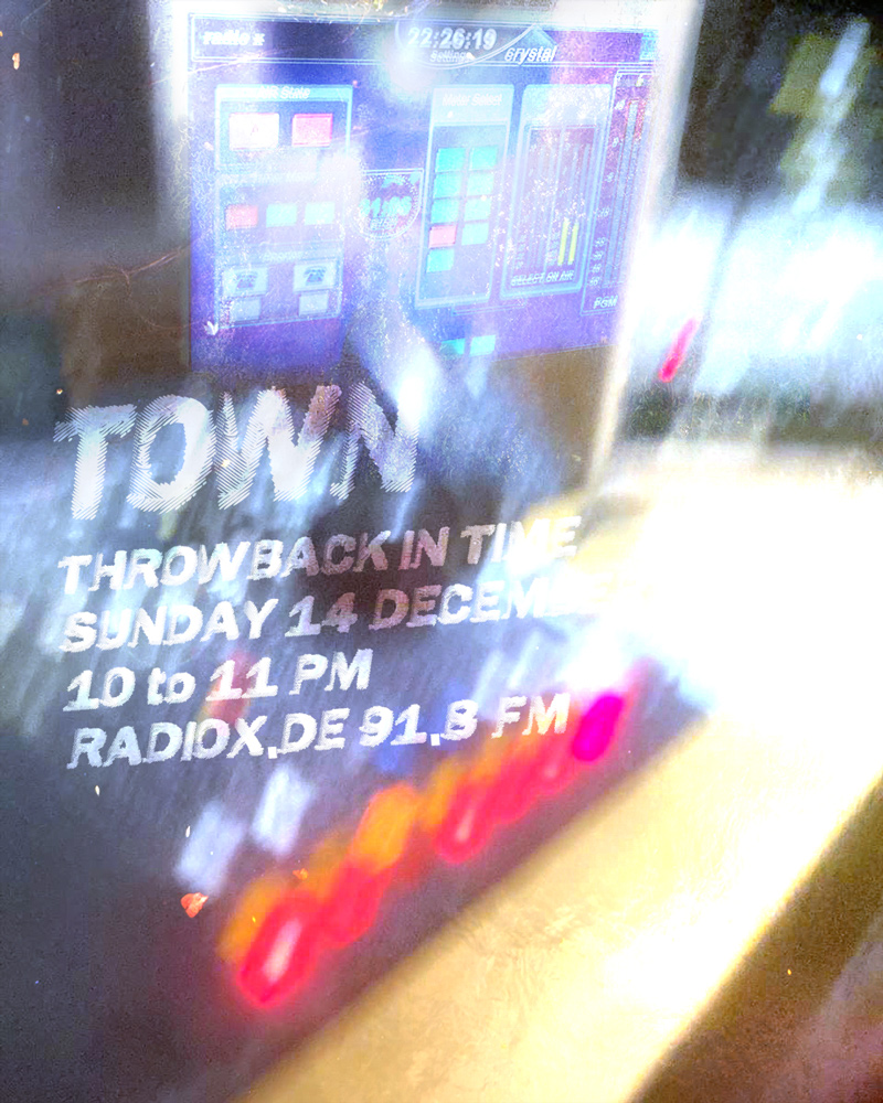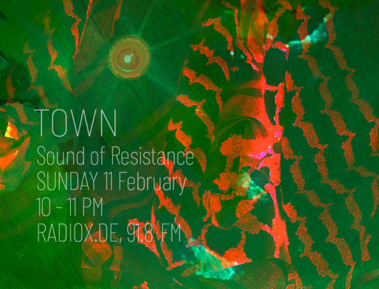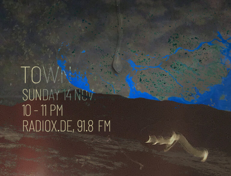 TOWN is an ongoing collective monthly radio show broadcast every 2nd sunday of the month on Radio x in Frankfurt since 2018. Sunday night is an era. The era where the frantic past collapses with your wills and desires to be better the week after. Week….as if time was real. Town wants to bring you to a status where Logic is just a sound program and order is out of itself. Parallel gatherings masticating your spoken words of mouth, kisses for your soul are jamming into oscillations, deep listenings and discussions are seances, voice-overs collaging across town.